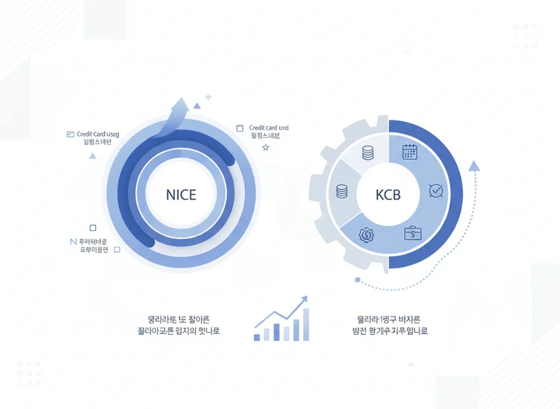 보통 KCB 점수가 NICE 점수보다 올리기 까다로운 편인데, 이는 KCB가 신용카드 이용 패턴이나 대출 비중을 더 엄격하게 보기 때문입니다. 자신의 소비 패턴이 카드 할부나 현금서비스에 치우쳐 있다면 KCB 점수가 낮을 확률이 높으니, 각 평가사의 가중치를 확인하여 맞춤형 관리를 시작해야 합니다.